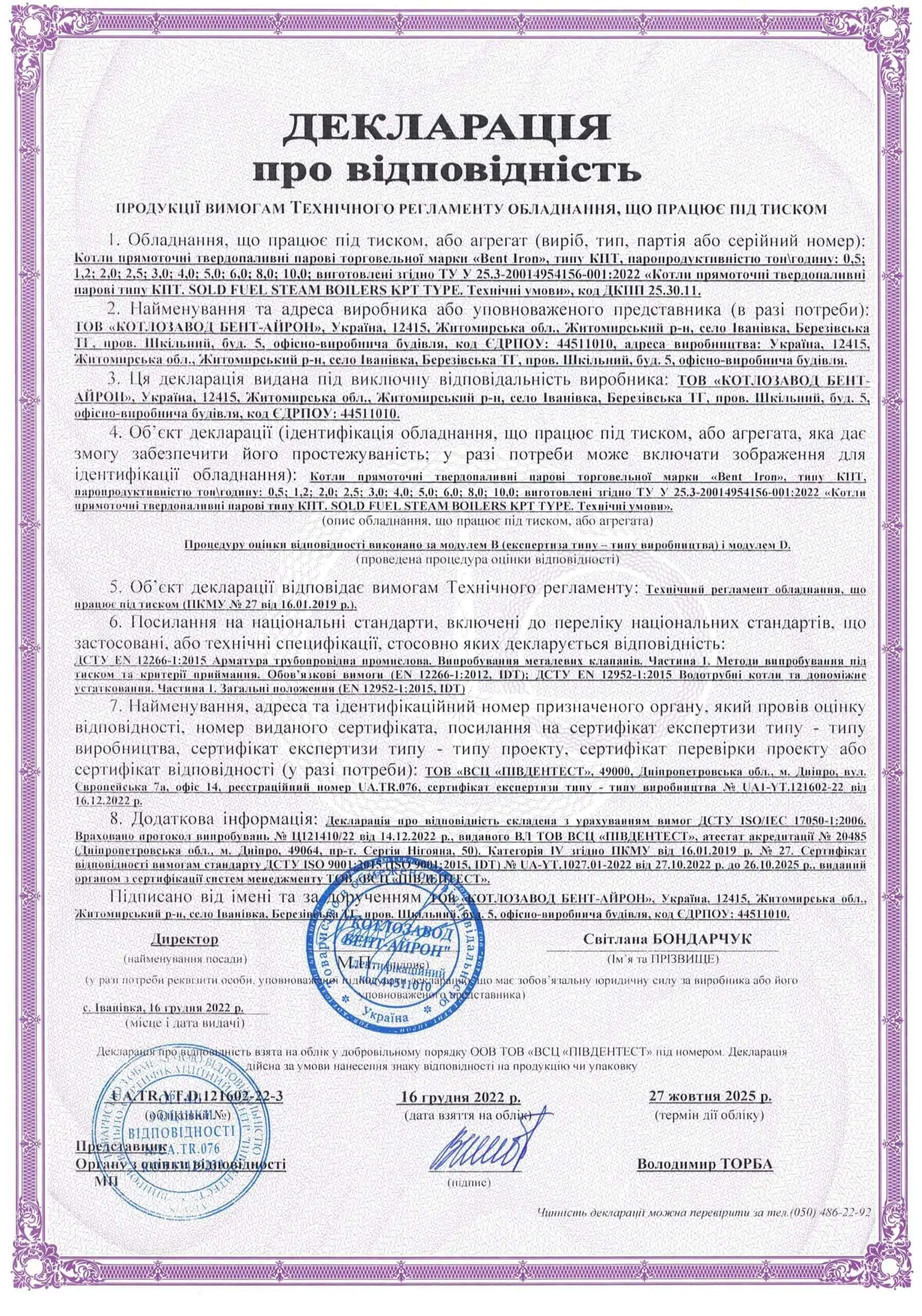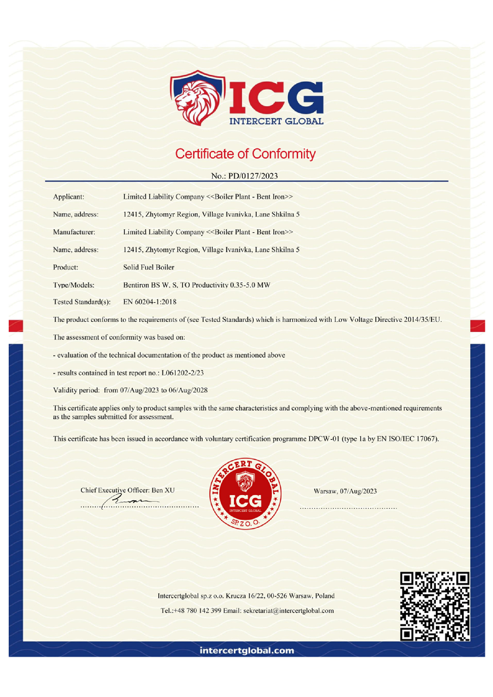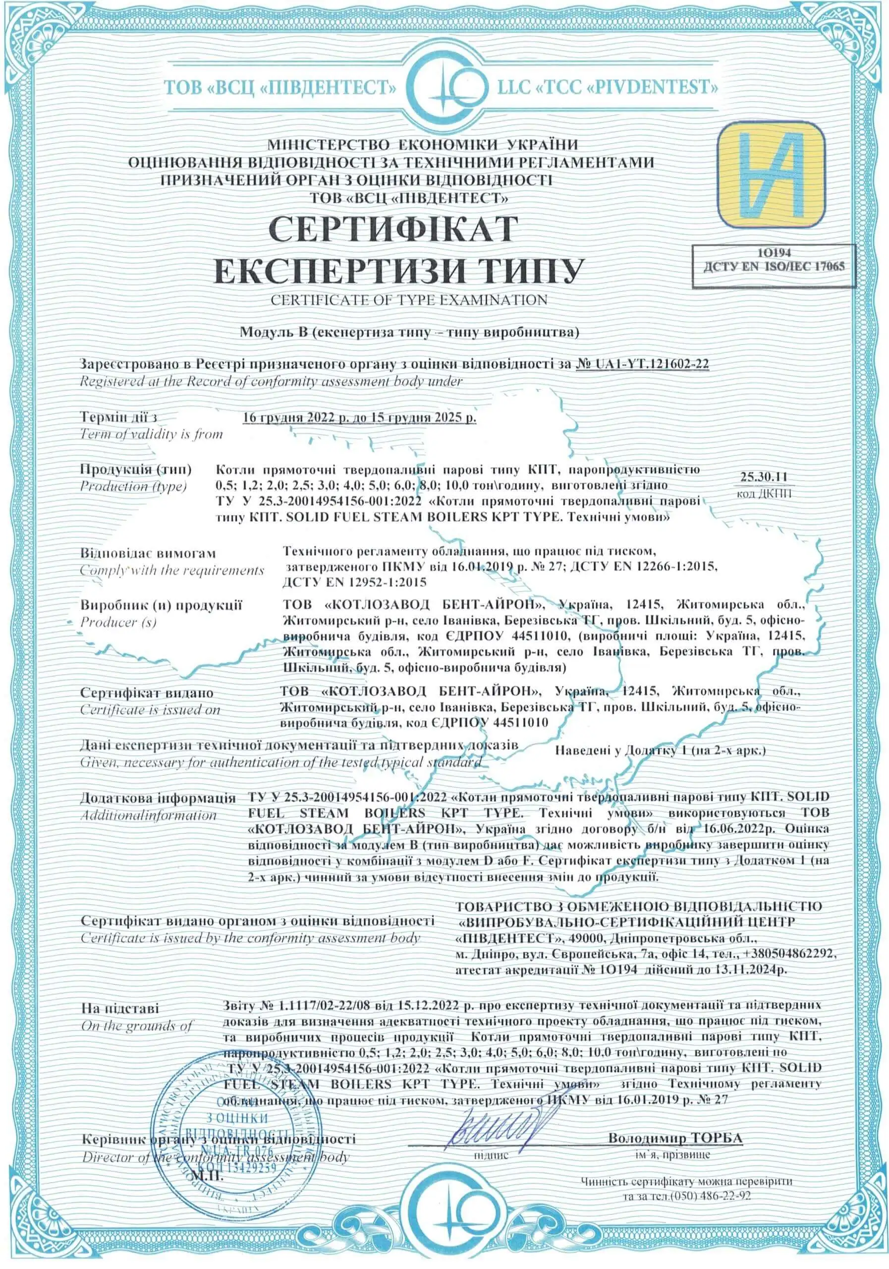 модельний ряд твердопаливних парогенераторів «BENT-IRON»