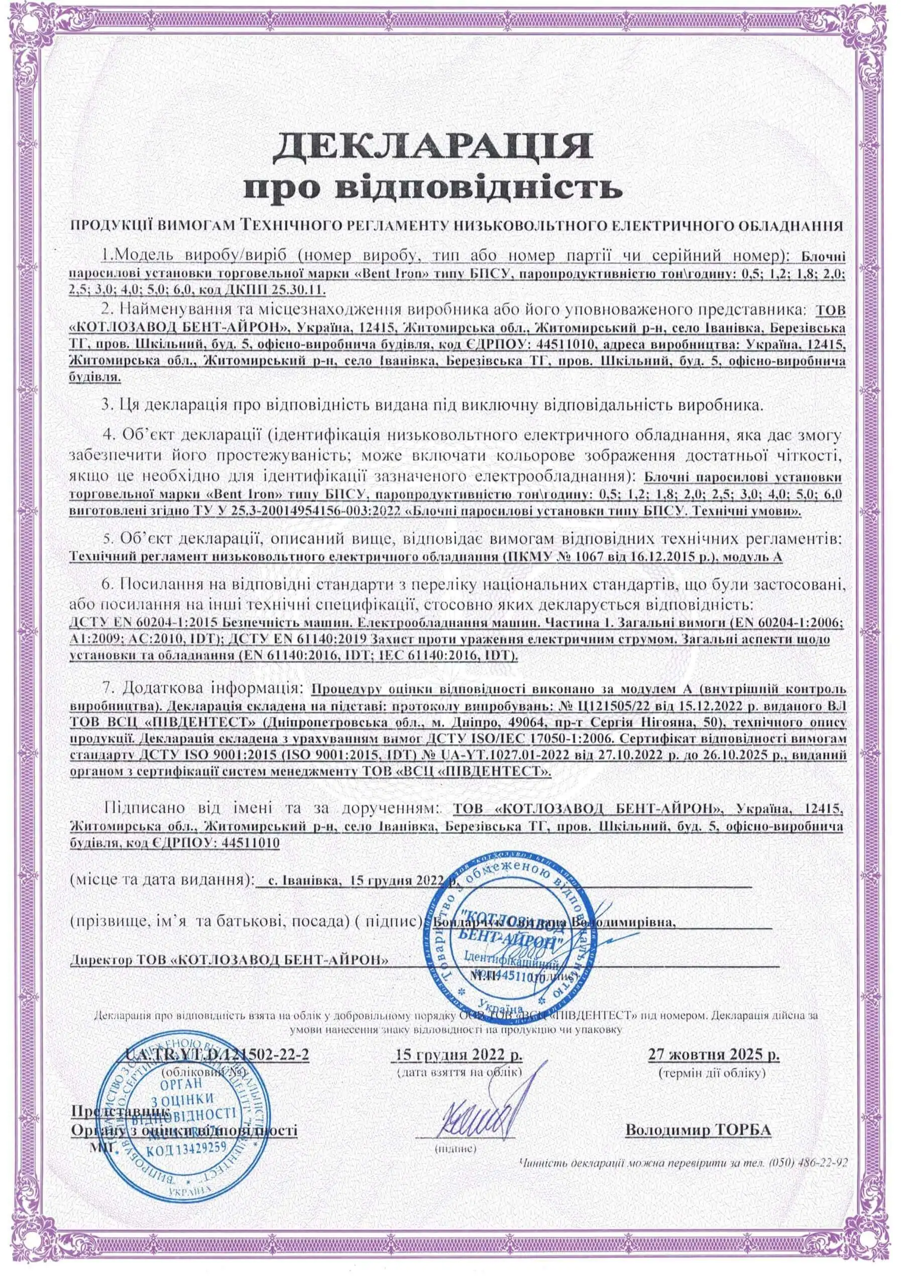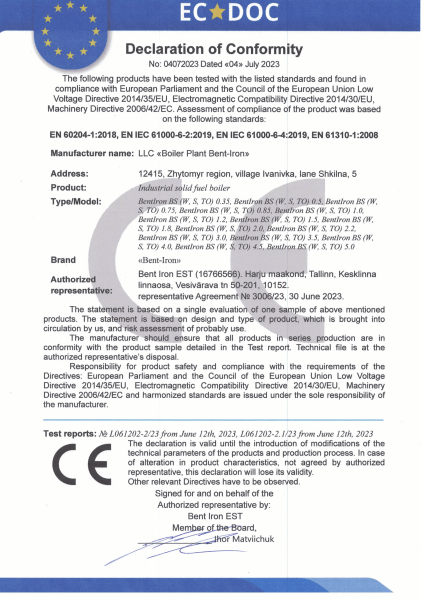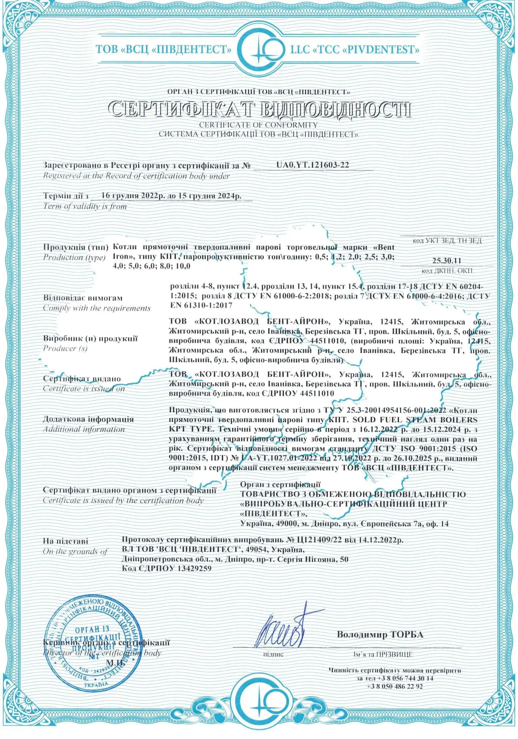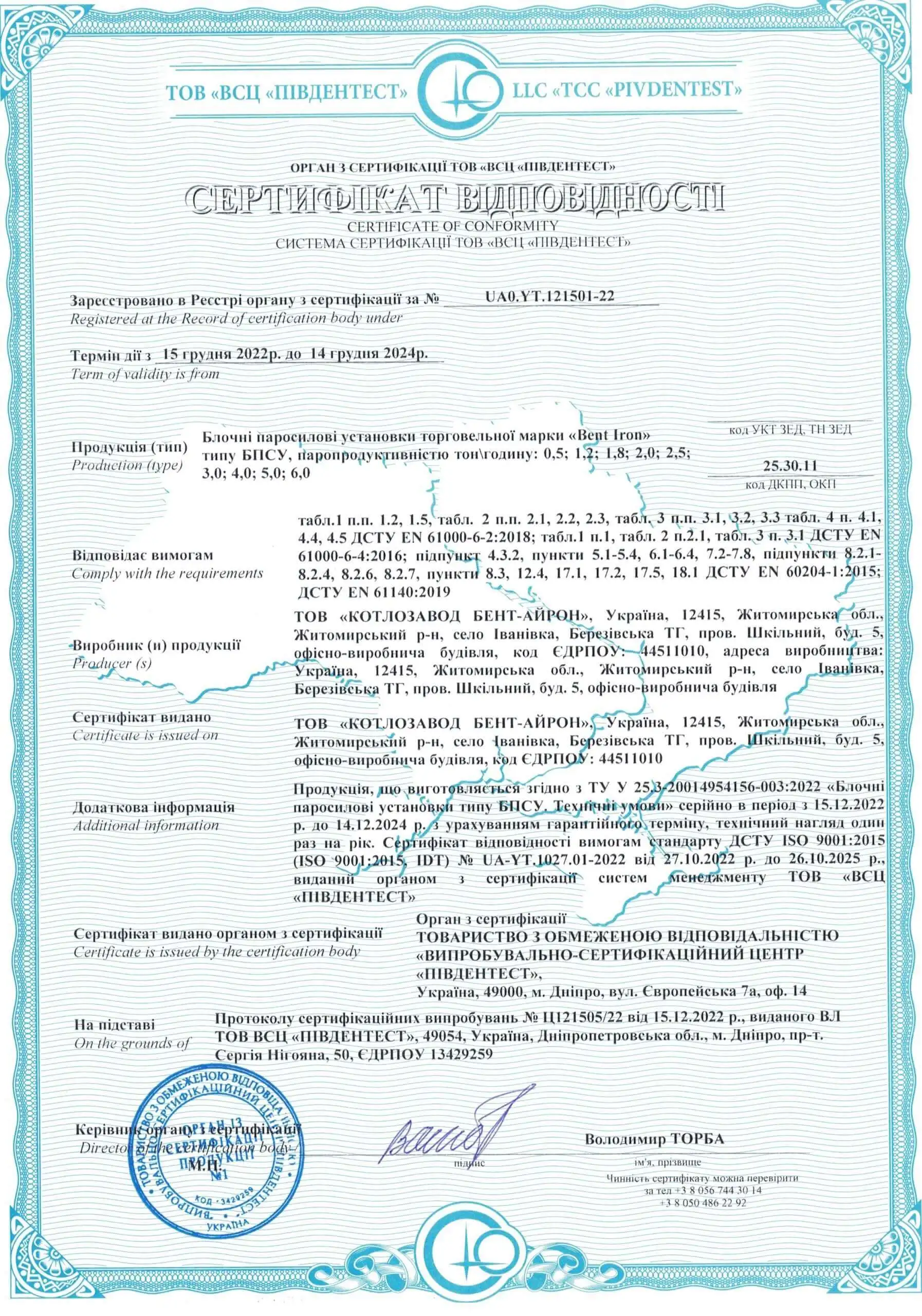 модельний ряд твердопаливних парогенераторів «BENT-IRON»
